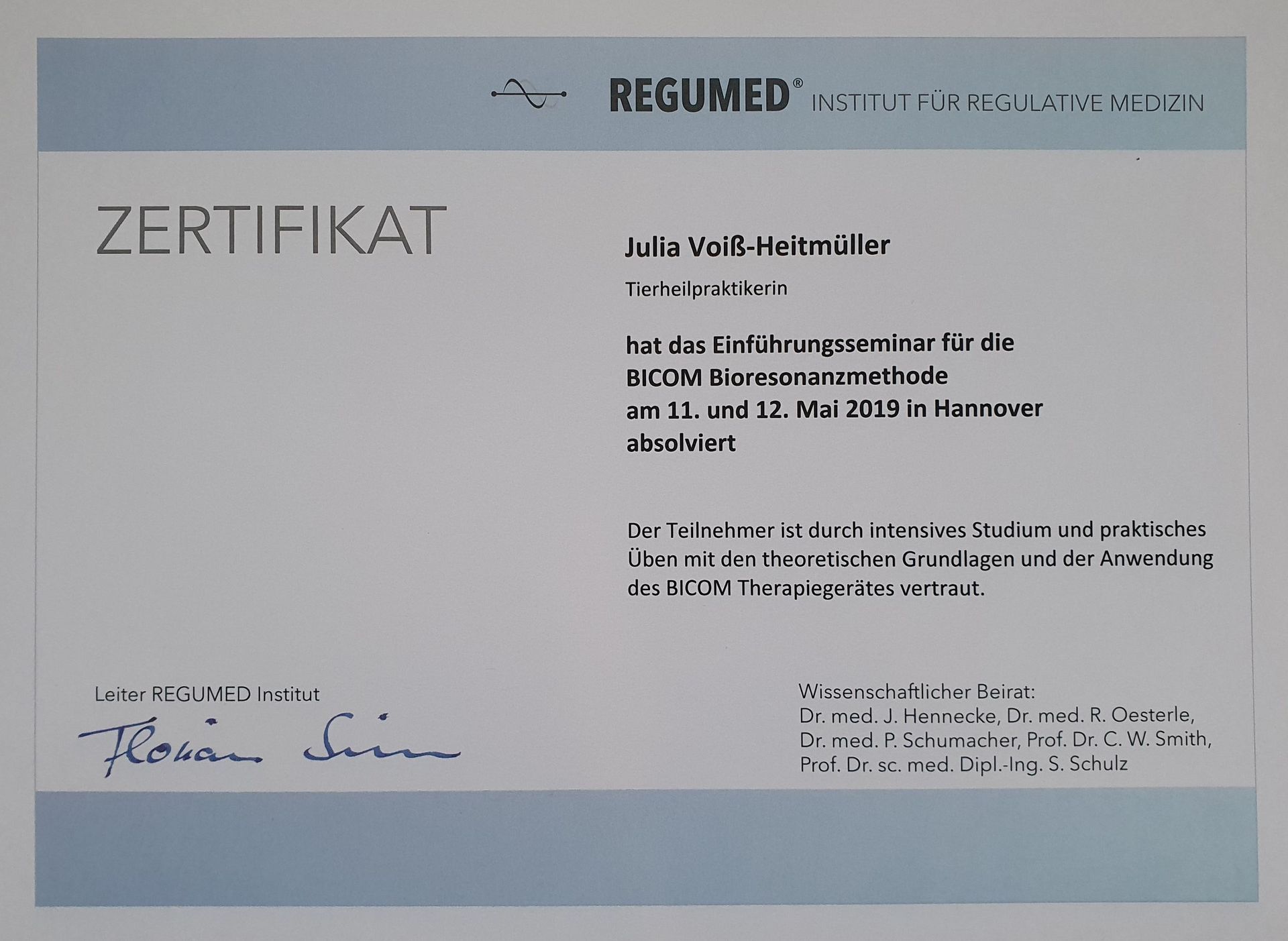 - September 2021 - Ausbildung zur Vet-Hydroxypathin
